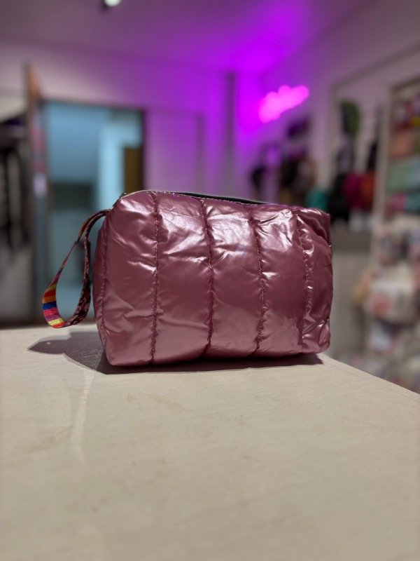 PORTACOSMÉTICOS PUFFER ROSA METALIZADO