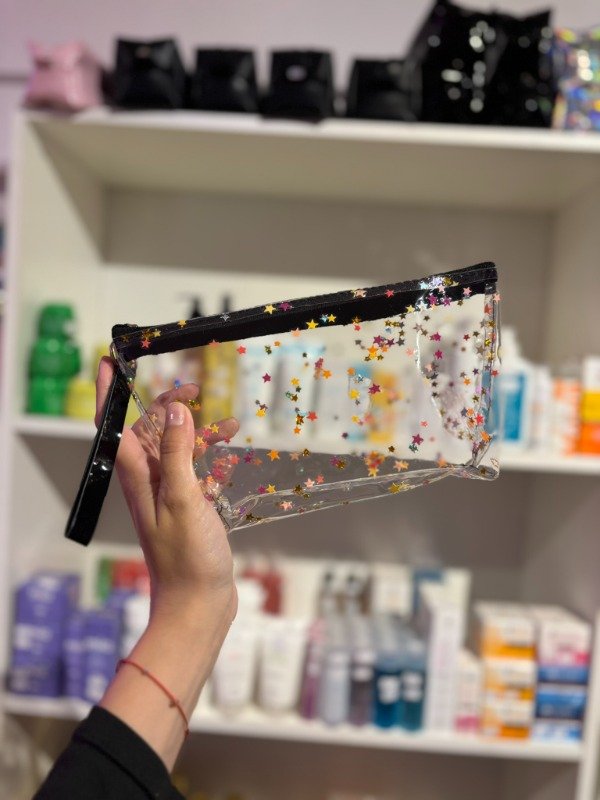 PORTACOSMÉTICOS TRANSPARENTE CON ESTRELLITAS --
